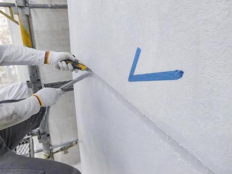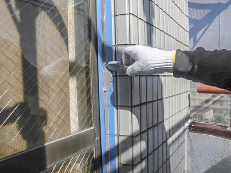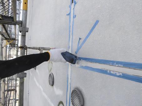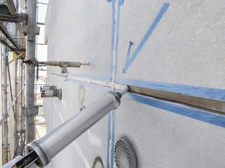 シーリング工事とは、外壁のボードとボードのつなぎ目(隙間)をシーリング材で埋める工事です。この他、サッシの金具と壁のつなぎ目などにも行われます。